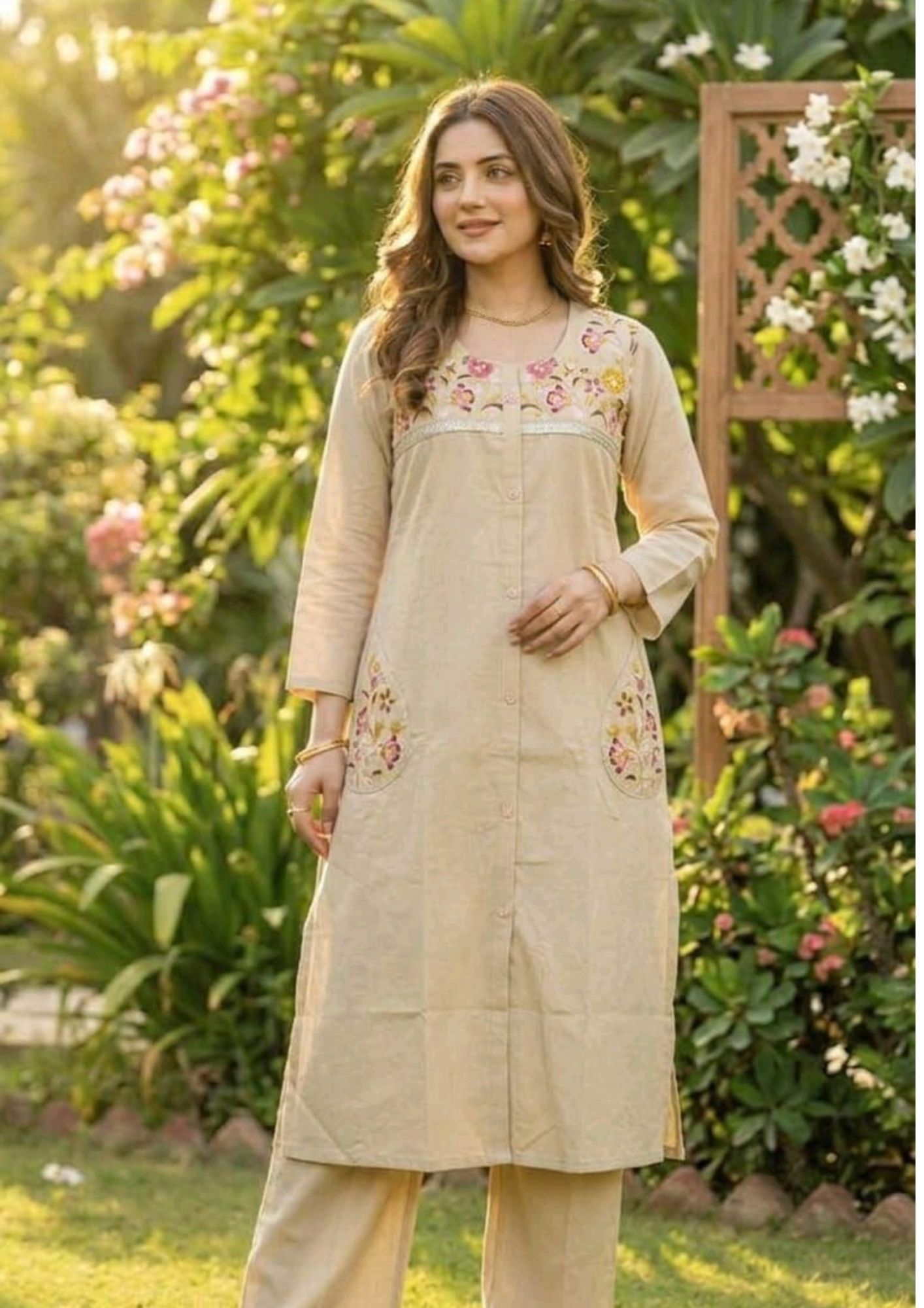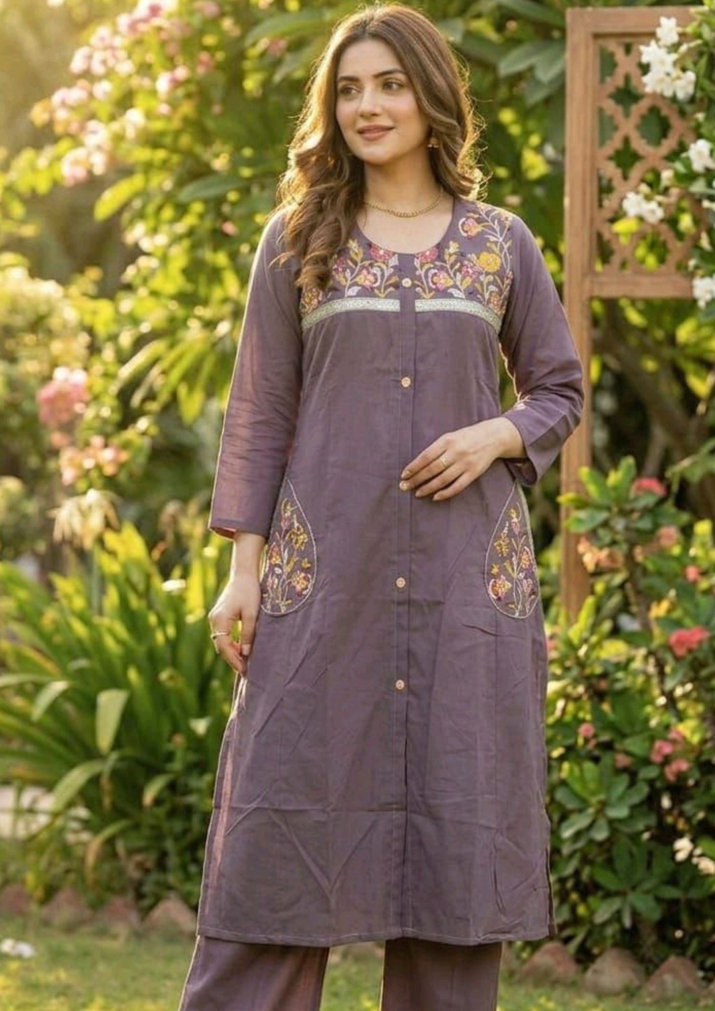 Elevate your everyday style with this Women’s Embroidered Cotton Kurta Set, designed to combine comfort with subtle elegance. Made from high-quality cotton fabric, this outfit is soft, breathable, and perfect for all-day wear. The delicate embroidery work on the neckline and pockets adds a refined and stylish touch, making it stand out while maintaining a minimal and graceful look.