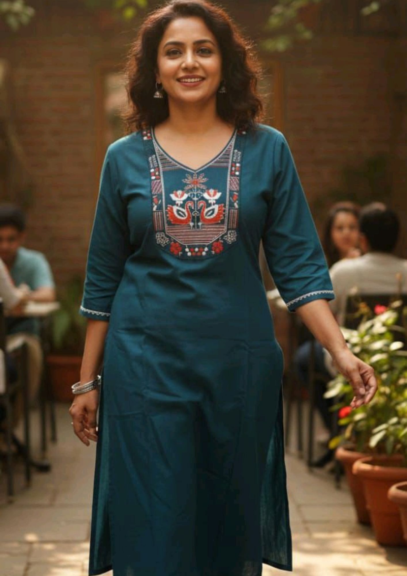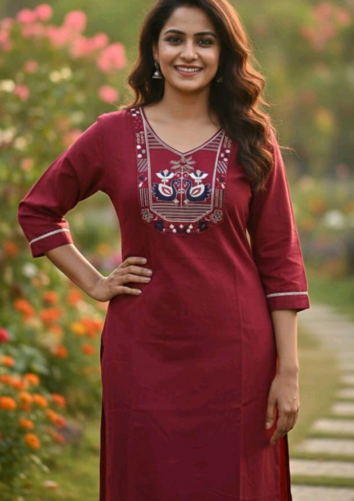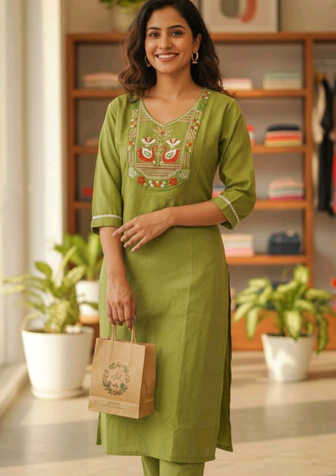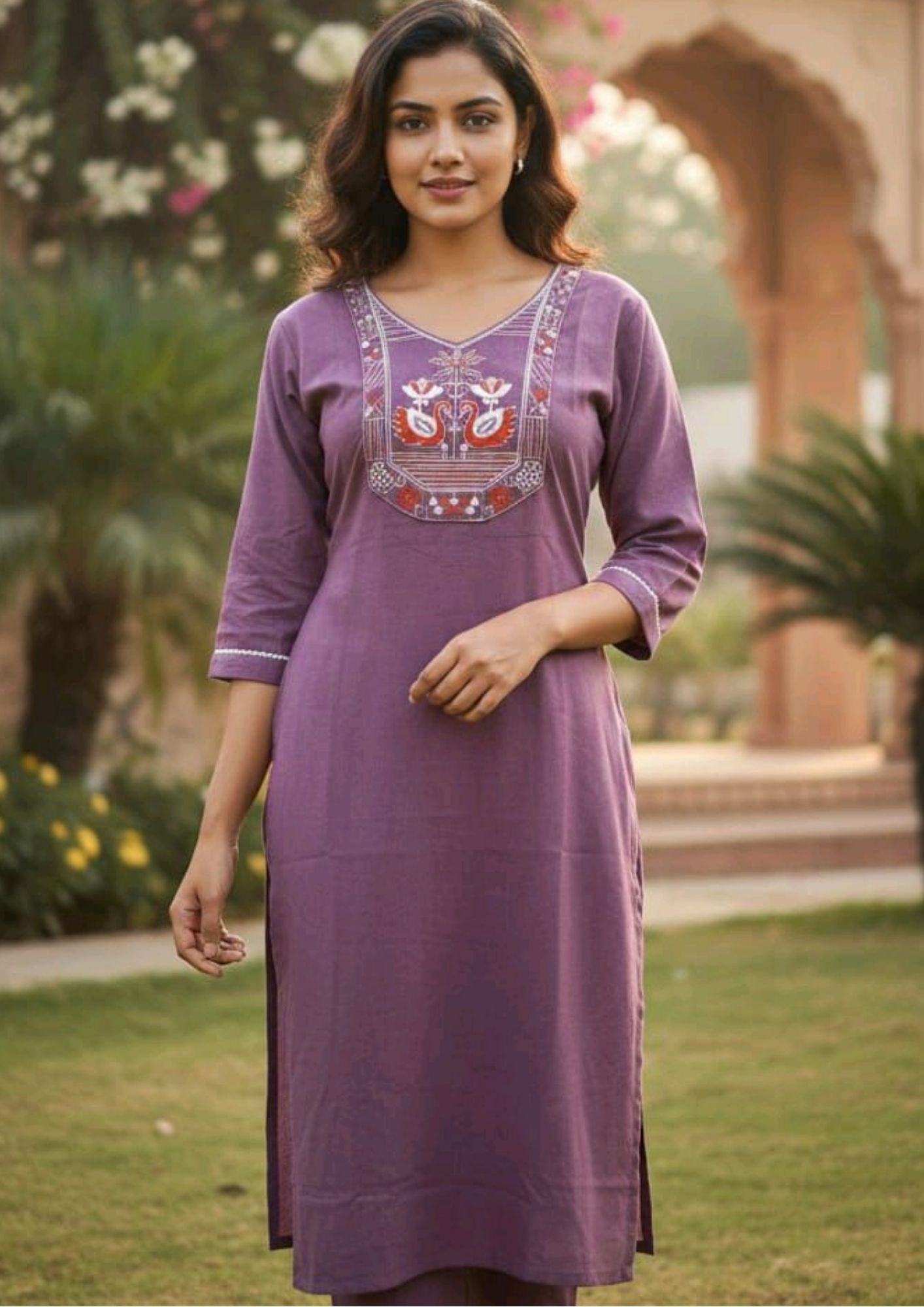 Refresh your everyday wardrobe with this Women’s Embroidered Cotton Straight Kurta Set, designed to offer a perfect mix of comfort and style. Made from high-quality cotton fabric, this kurta set is soft, breathable, and ideal for all-day wear. The elegant embroidery on the neckline adds a traditional yet modern touch, making the outfit look graceful and refined.