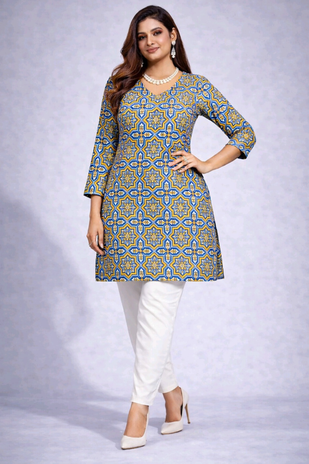 The straight-fit silhouette provides a flattering look while allowing ease of movement, making it suitable for daily wear, office use, and casual outings. The vibrant prints and modern design give it a fresh and trendy look, while its versatile styling allows you to pair it effortlessly with leggings, pants, or palazzos. Whether you're heading out for work or a casual day out, this kurti keeps you comfortable and fashionable.